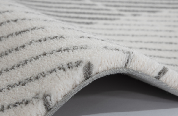 Geometryczny wzór Huver utrzymany jest w palecie szarości. Otaczający dywan najjaśniejszy pas optycznie zamyka kompozycję na kształt ramy, a cieniowania zastosowane przez projektanta dodają wzorowi głębi. Dywan sprawdzi się we wnętrzach nowoczesnych, szczególnie w tych utrzymanych w stylu minimalistycznym czy loftowym.